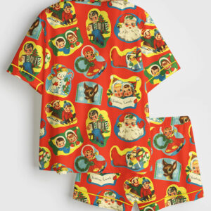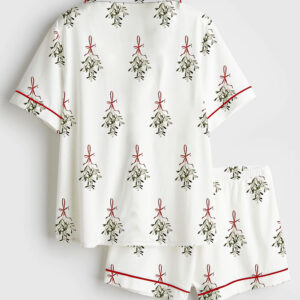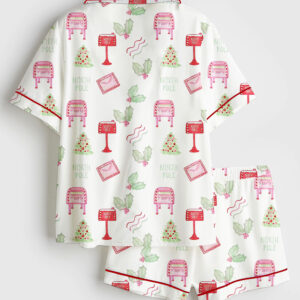 Women’s Watercolor Christmas Santa Letters Poste Preppy Letterbox Short Sleeve Satin Pajama Set