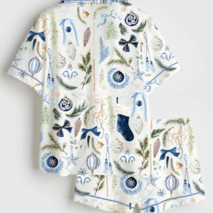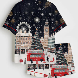 Women’s Vintage London At Christmas London Holiday Travel Short Sleeve Satin Pajama Set