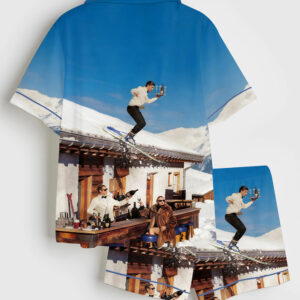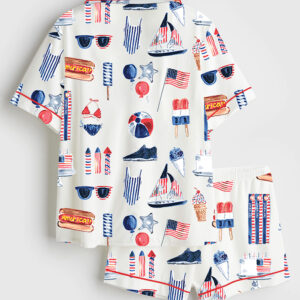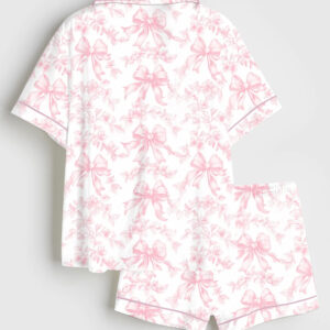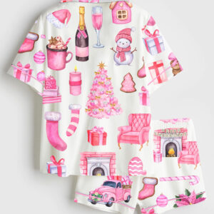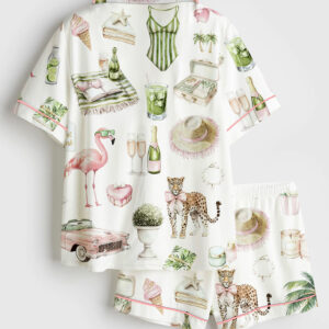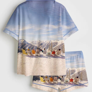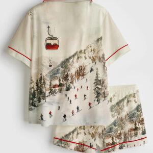Women’s Vintage Skiing Adventurous Outdoor Dining Spots Apres Ski Short Sleeve Satin Pajama Set