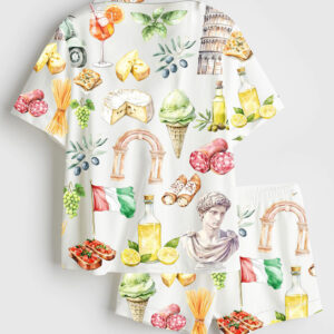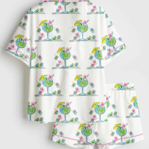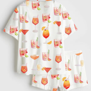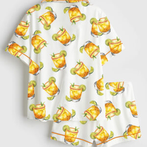 Women’s Watercolor Passion Fruit Margarita Alcohol Drink Short Sleeve Satin Pajama Set