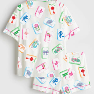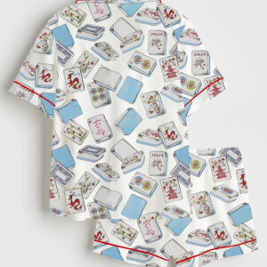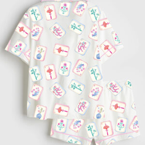 Women’s Watercolor Hand Drawn Mahjong Tile Cocktail Mahjong Party Short Sleeve Satin Pajama Set