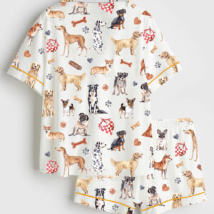 Women’s Watercolor Dog Breed All The Dog Fluffy Pets Portraits Short Sleeve Satin Pajama Set
