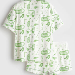 Women’s Watercolor Golf Brush Stroke Golf Lover Masters Golf Print Short Sleeve Satin Pajama Set