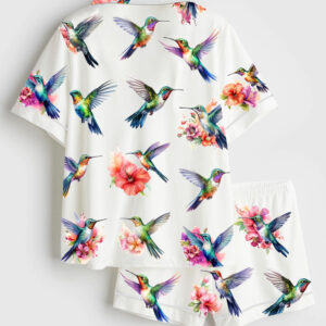 Women’s Watercolor Hummingbirds Long Sleeve Satin Pajama Set