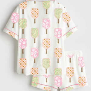 Women’s Watercolor Pickleball Paddles Pickleball Social Club Print Short Sleeve Satin Pajama Set