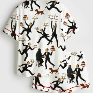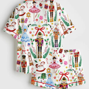 Women’s Vintage Christmas Nutcracker Ballet Holiday Party Short Sleeve Satin Pajama Set
