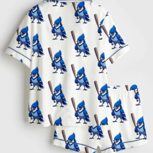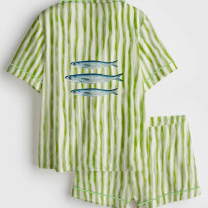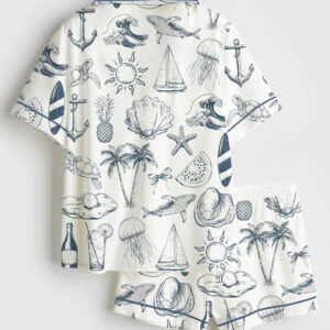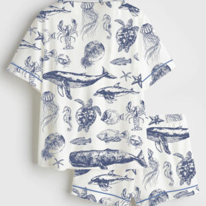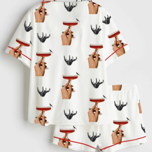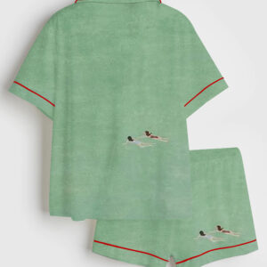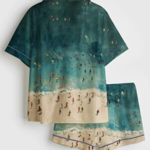 Women’s Tiny People Swimming In Ocean Summer Beach Travel Short Sleeve Satin Pajama Set