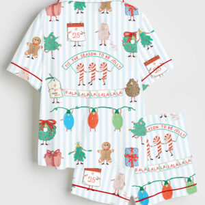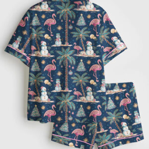 Women’s Vintage Christmas Winter Holiday Snowman Lovers Short Sleeve Satin Pajama Set
