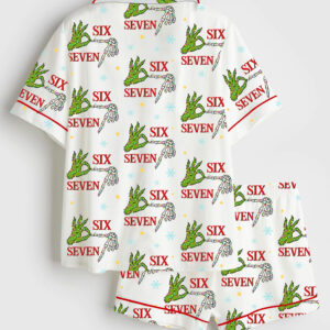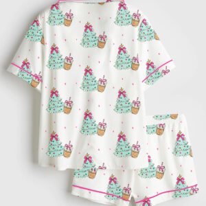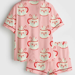 Women’s Vintage Christmas Mugs Short Sleeve Satin Pajama Set