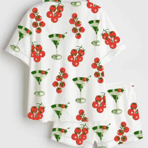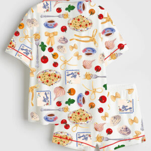 Women’s Tomato Pasta Funny Food Long Sleeve Satin Pajama Set