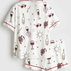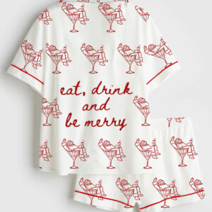Women’s Trendy Holiday Bar Cart Eat Drink And Be Merry Christmas Short Sleeve Silky Satin Pajama Set