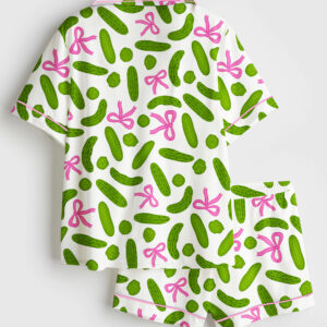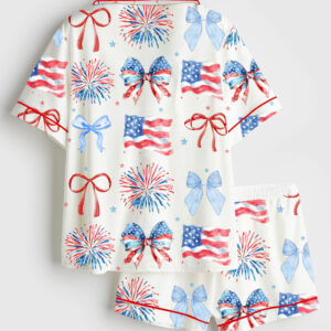 Women’s USA Coquette Bow Retro America 4th Of July Print Short Sleeve Satin Pajama Set