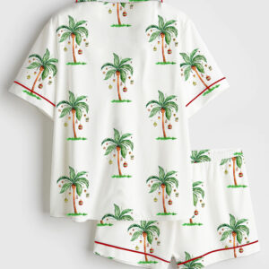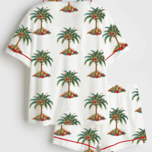 Women’s Tropical Christmas Beach Hawaiian Xmas Santa HoHoHo Short Sleeve Satin Family Pajama Set