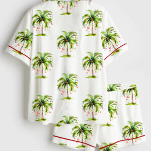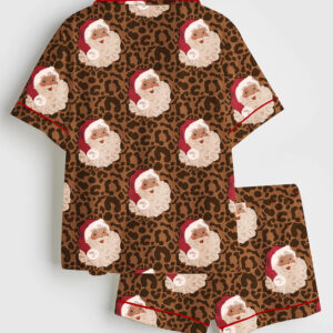 Women’s Tropical Christmas Santa Hawaiian Aloha Holiday Short Sleeve Satin Family Pajama Set