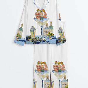 Women’s Tinis And Weenies Bachelorette Party Martinis Hot Dogs Long Sleeve Satin Pajama Set