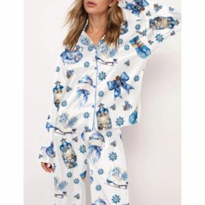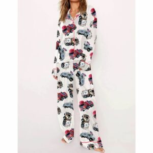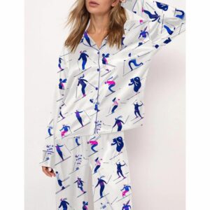 Christmas Skiing Holiday Satin Pajama Set For Women
