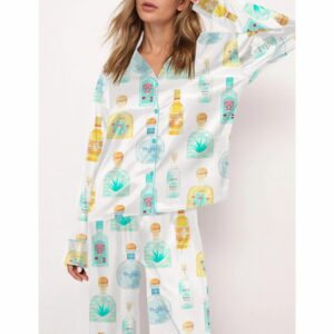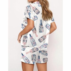 Champagne Bottle Watercolor Satin Pajama Set For Women