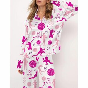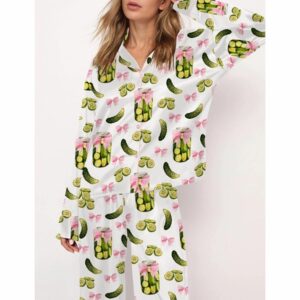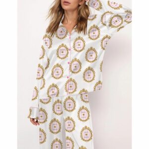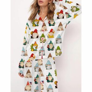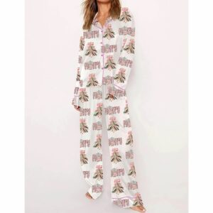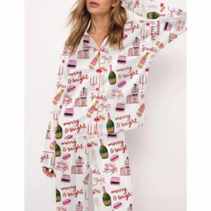 Christmas Pink Champagne Macarons Satin Pajama Set For Women