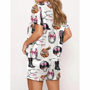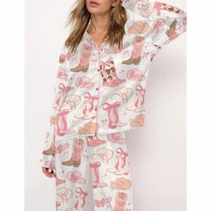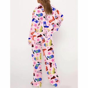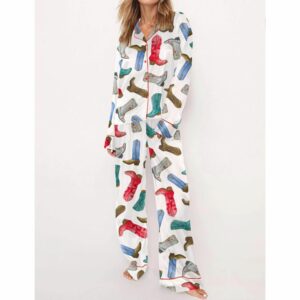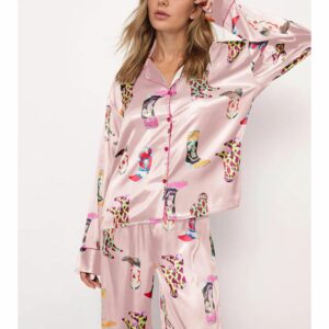 Colorful Cowboy Boots Satin Pajama Set For Women