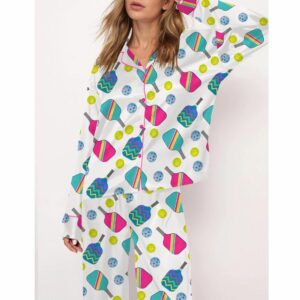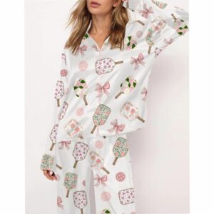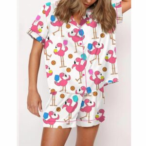 Funny Flamingo Pickleball Satin Pajama Set For Women