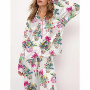 Coquette Christmas Chinoiserie Tree Satin Pajama Set For Women