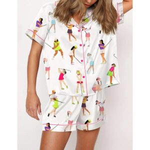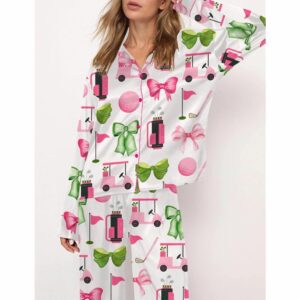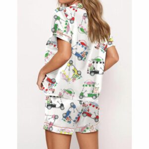 Wine Bottle Golf Cart Satin Pajama Set For Women