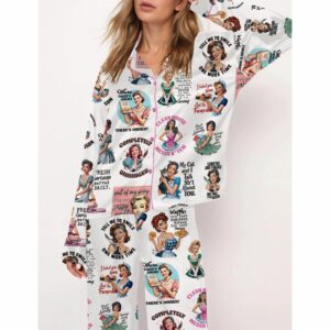 Sarcastic Retro Housewife Satin Pajama Set For Women
