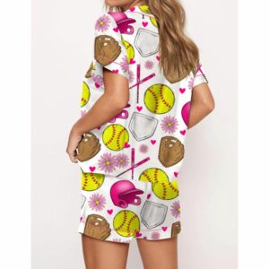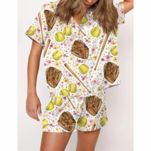 Baseball Ice Cream Drip Satin Pajama Set For Women