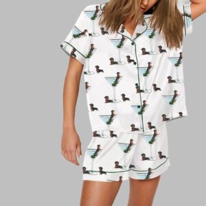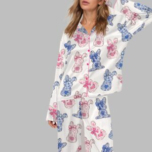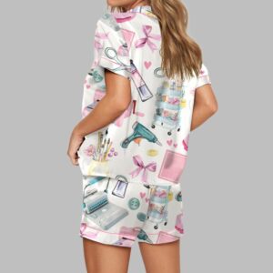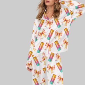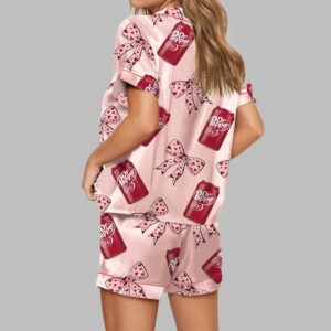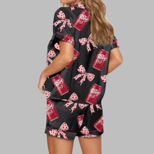 Drink Pink Coquette Bow Satin Pajama Set For Women