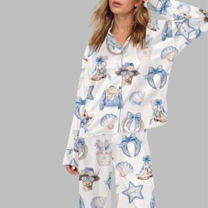 Blue Toile Coastal Cowgirl Pajama Set For Women