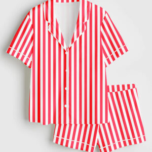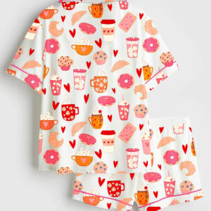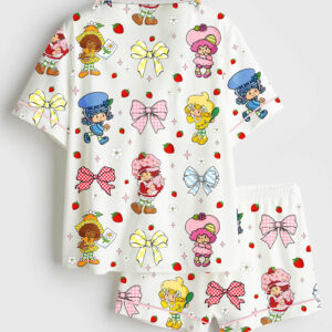 Women’s Strawberry Coquette Bow Berry Sweet Girl Cartoon Short Sleeve Satin Pajama Set