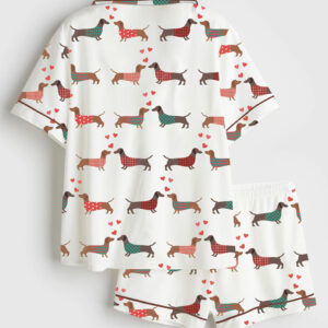 Women’s Valentine Dachshund Dog Long Sleeve Satin Pajama Set