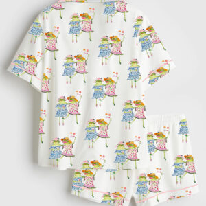 Women’s Watercolor Giraffe Animal Safari Nursery Tropical Leaves Short Sleeve Satin Pajama Set