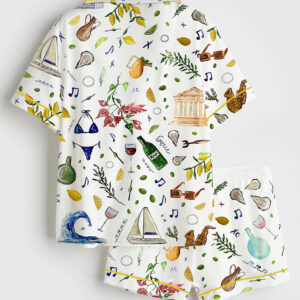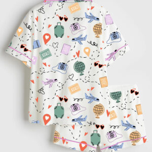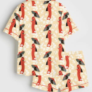 Women’s Tokyo Sights Japanese Kimonos And Traditional Umbrellas Short Sleeve Satin Pajama Set