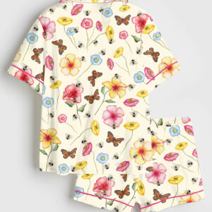 Women’s Watercolor Tropical Flowers And Leaves Hawaii Wedding Short Sleeve Satin Pajama Set