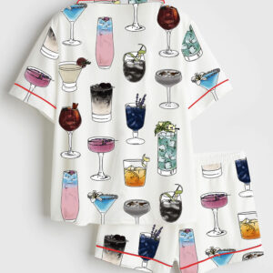 Women’s Tinis And Weenies Dirty Martini Party Print Short Sleeve Pocket Cotton Pajama Set