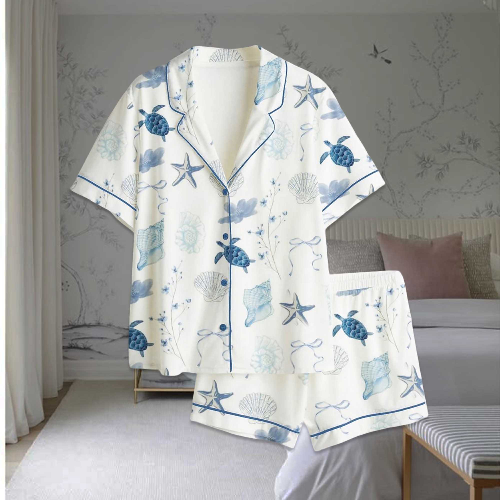 Nautical Turtle Conch Bow Satin Pajama Set